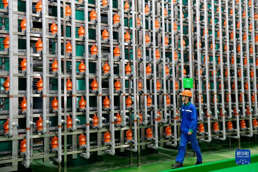 11月26日,在山東香馳健源生物科技有限公司,工作人員在巡查生產線。