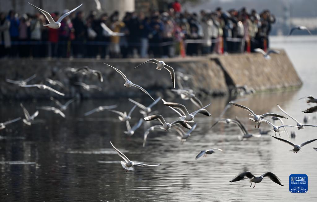 初冬時節,天津市迎來候鳥遷徙高峰期,不少海鷗從寒冷的西伯利亞遷徙到濱海新區老碼頭附近的海河岸邊越冬,吸引游人前往觀賞。