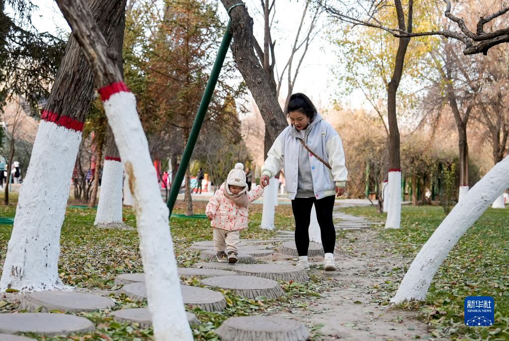 初冬時節,寧夏銀川不少市民選擇來到公園樂享周末時光。