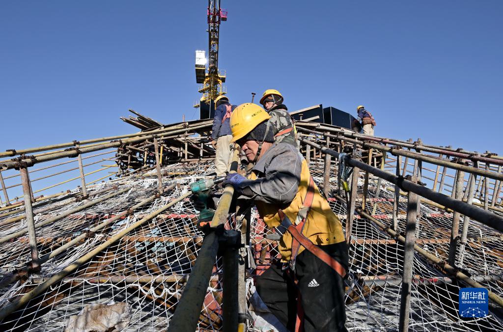 11月26日,工人在河北省唐山市豐潤區(qū)糧食安全應(yīng)急儲備及食品深加工全鏈化綜合生產(chǎn)基地項目建設(shè)工地施工。