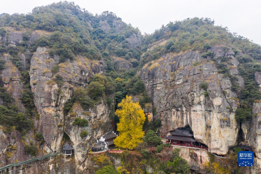 11月26日拍攝的懸崖旁的古銀杏樹(shù)(無(wú)人機(jī)照片)。