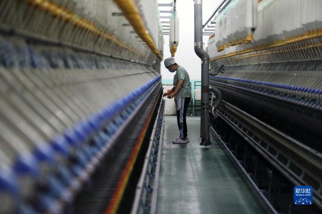 11月26日,在涇川縣一家棉紗生產企業,工人在棉紗生產線上作業。