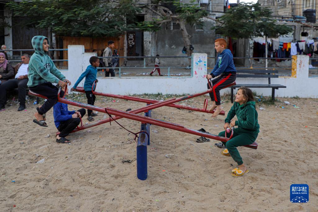 11月27日,孩子們在加沙地帶南部城市拉法一處公園玩耍。新華社發(里澤克·阿卜杜勒賈瓦德攝)