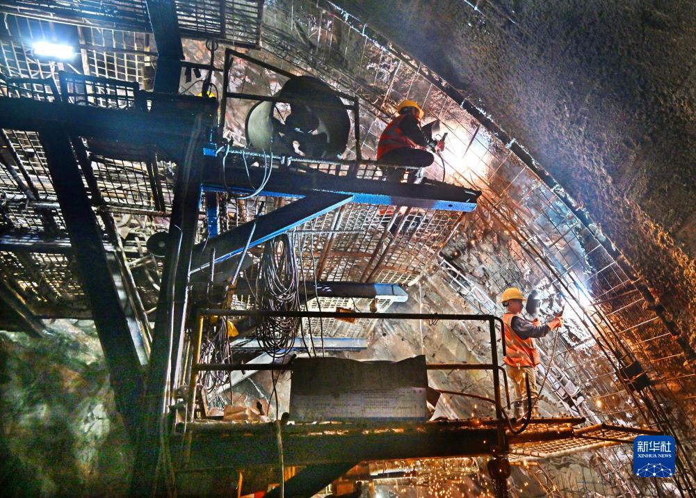 11月27日,中鐵二局建設者在膠州灣第二海底隧道內施工作業。