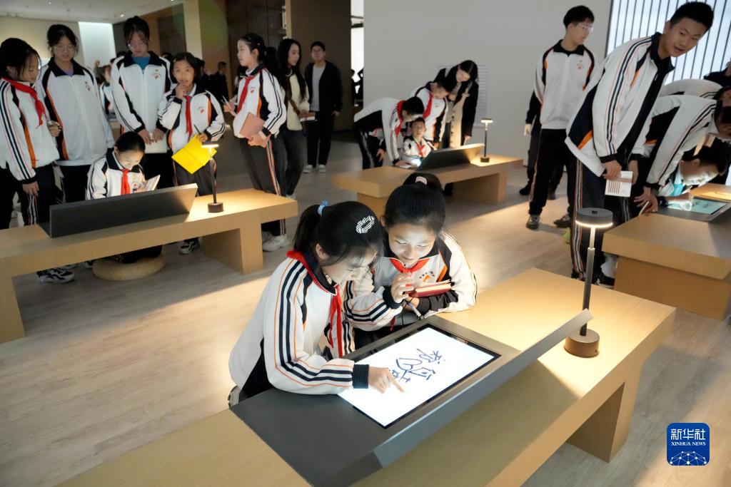 學(xué)生在甘肅簡牘博物館參觀后簽名留念(10月25日攝)。新華社記者 王毓國 攝
