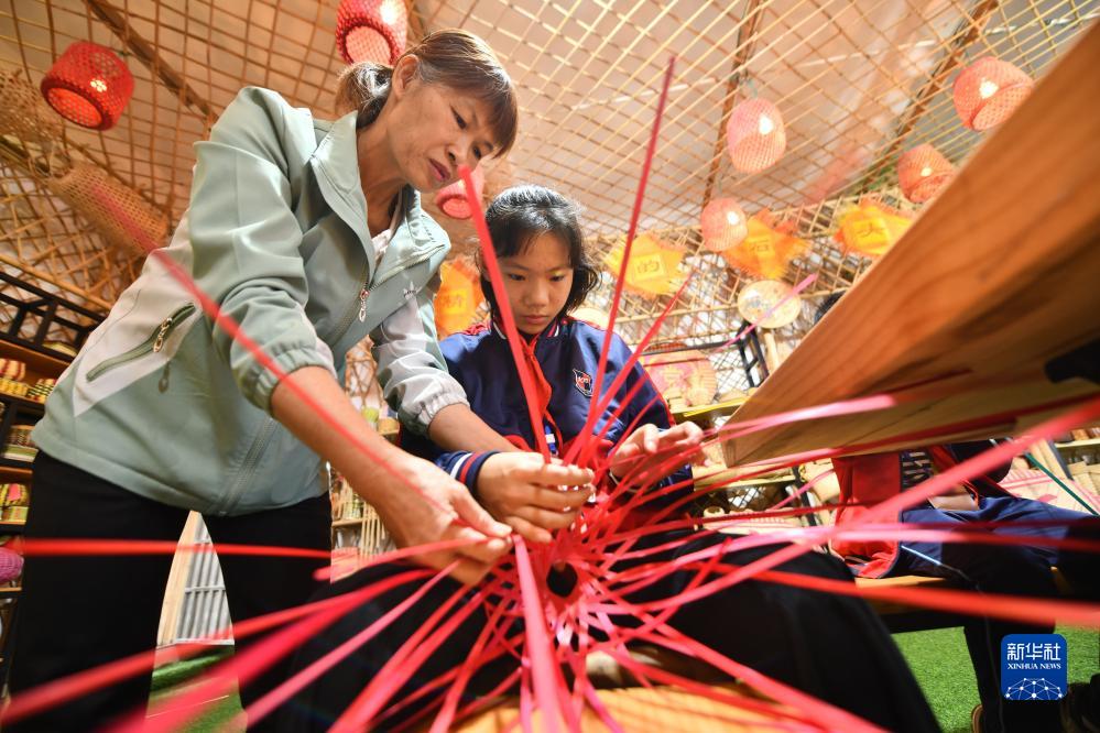 近年來,廣西岑溪市南渡中心小學(xué)將當(dāng)?shù)胤沁z項目——竹芒編織技藝引進(jìn)課堂,打造特色校園文化,豐富學(xué)生課外生活。
