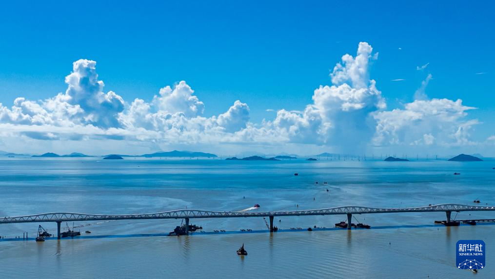7月6日,兴建中的澳门大桥(无人机照片)。