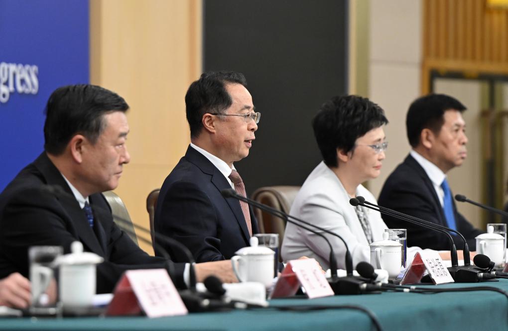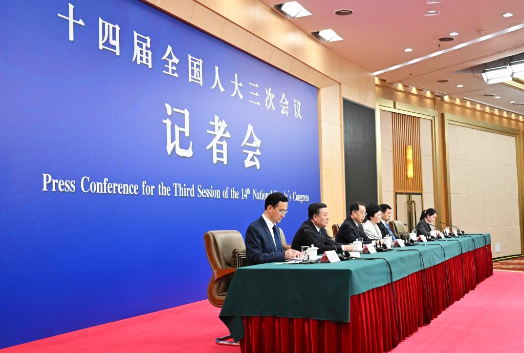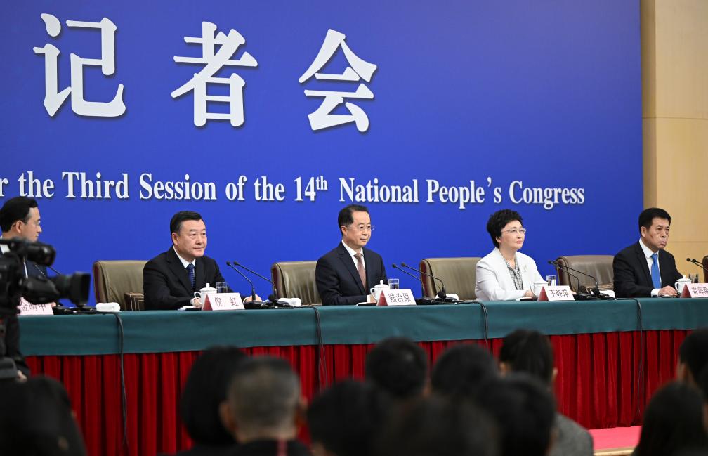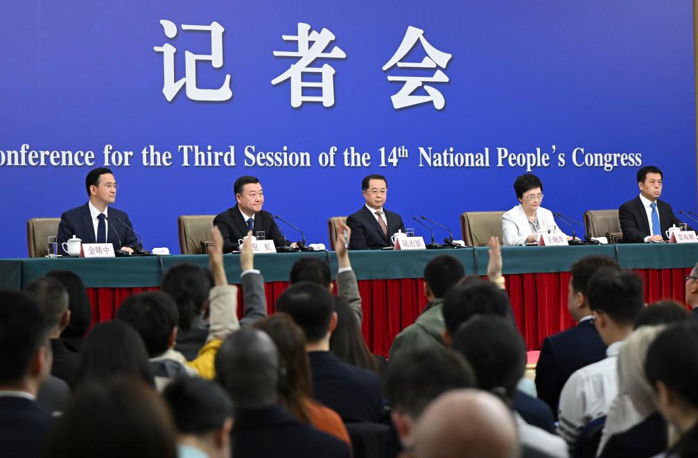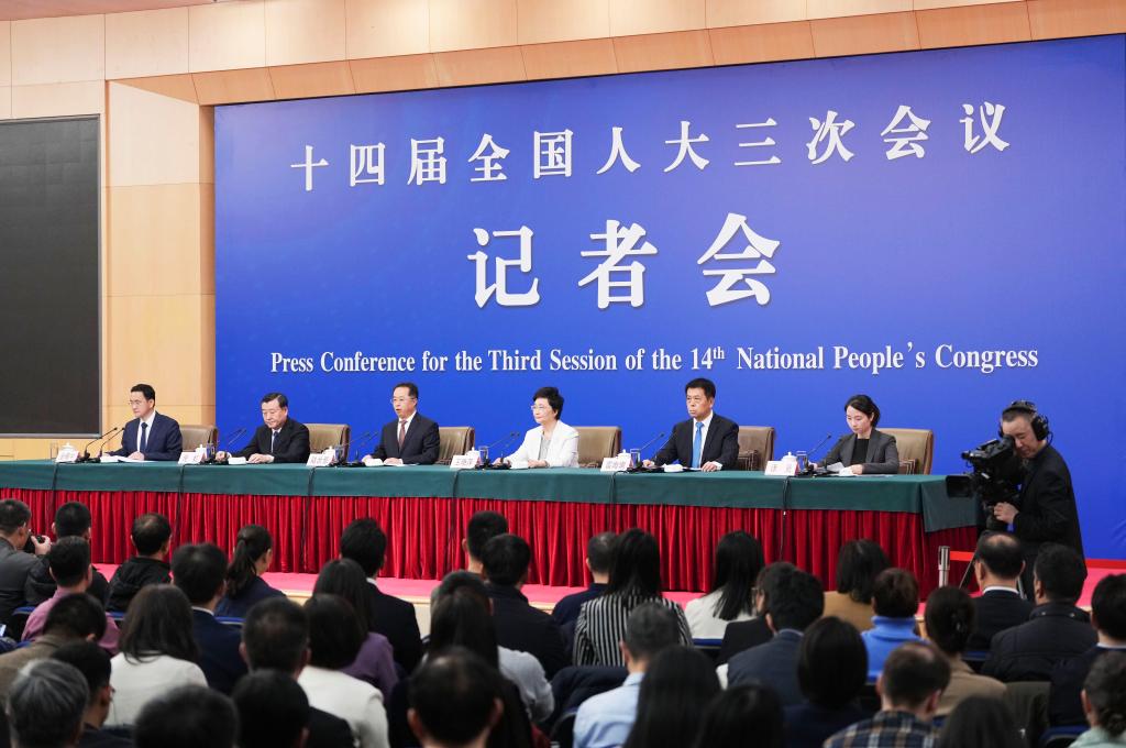 3月9日,十四届全国人大三次会议在北京梅地亚中心新闻发布厅举行记者会。民政部部长陆治原、人力资源和社会保障部部长王晓萍、住房和城乡建设部部长倪虹、国家卫生健康委员会主任雷海潮就民政、就业和社会保障、住房、卫生健康等相关问题回答中外记者提问。