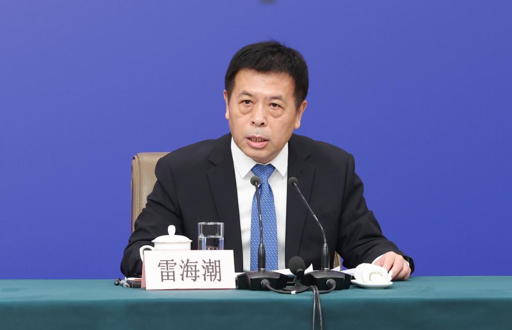 3月9日,十四届全国人大三次会议在北京梅地亚中心新闻发布厅举行记者会。民政部部长陆治原、人力资源和社会保障部部长王晓萍、住房和城乡建设部部长倪虹、国家卫生健康委员会主任雷海潮就民政、就业和社会保障、住房、卫生健康等相关问题回答中外记者提问。这是雷海潮在回答记者提问。