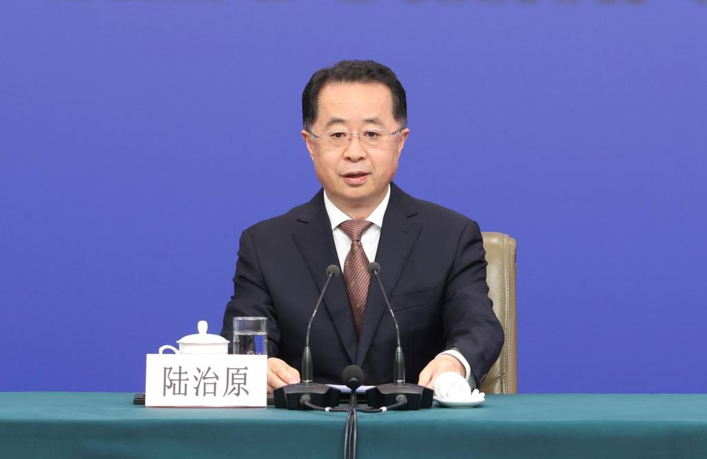3月9日,十四届全国人大三次会议在北京梅地亚中心新闻发布厅举行记者会。民政部部长陆治原、人力资源和社会保障部部长王晓萍、住房和城乡建设部部长倪虹、国家卫生健康委员会主任雷海潮就民政、就业和社会保障、住房、卫生健康等相关问题回答中外记者提问。这是陆治原在回答记者提问。