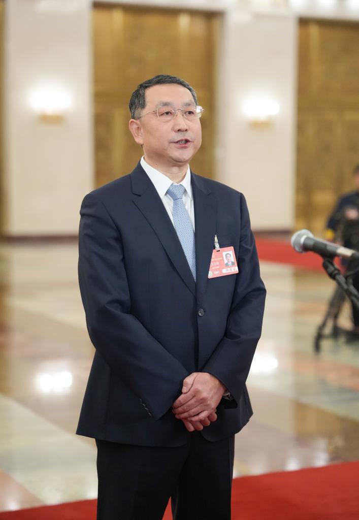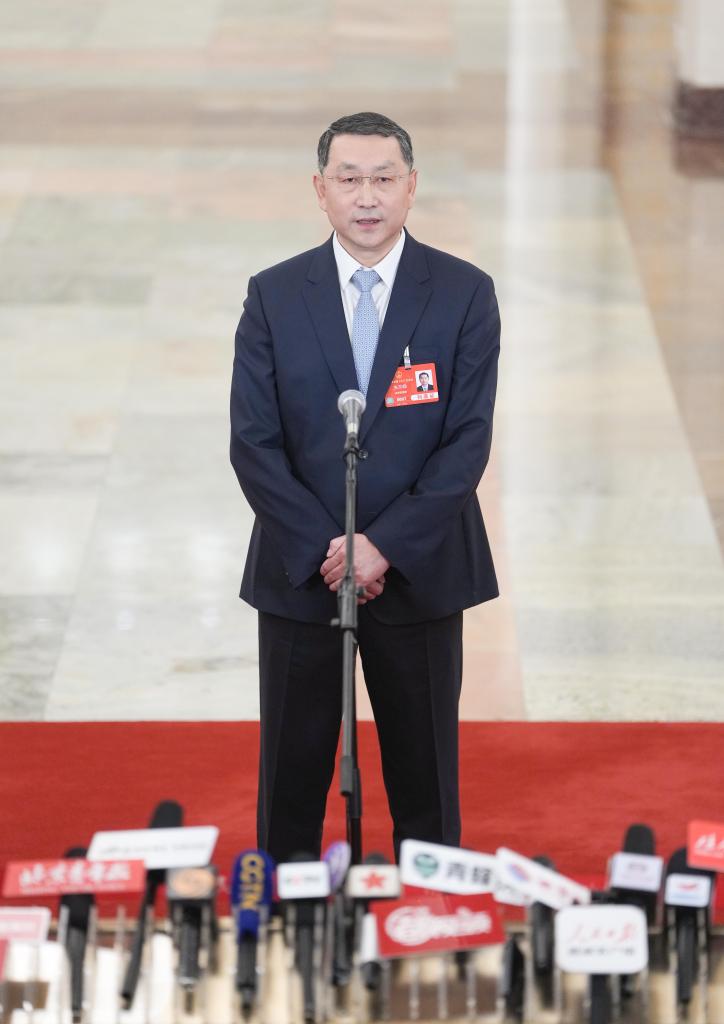 3月11日,第十四届全国人民代表大会第三次会议第三场“部长通道”集中采访活动在北京人民大会堂举行。这是自然资源部部长关志鸥接受媒体采访。