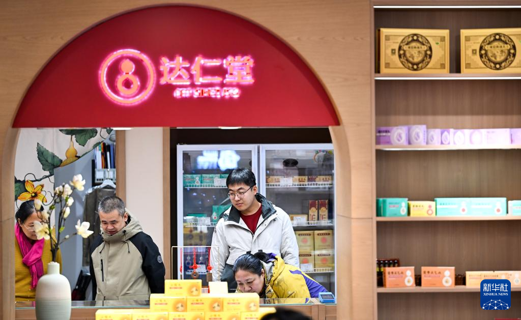 12月24日,在位于天津古文化街的达仁堂健康生活馆,顾客在购买药品。