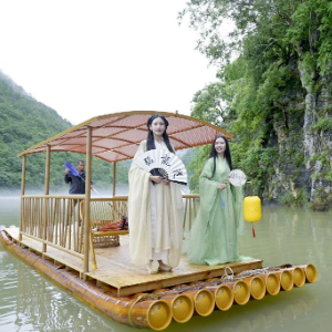 7月27日,游客在澜沧江游玩体验古风旅拍。