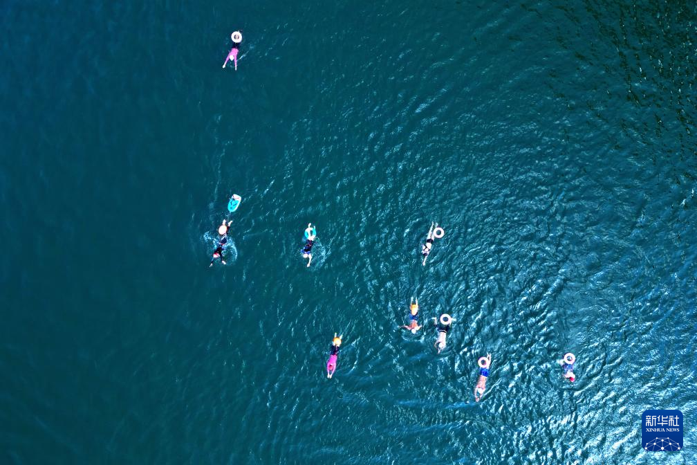 12月25日,游泳爱好者在游泳(无人机照片)。