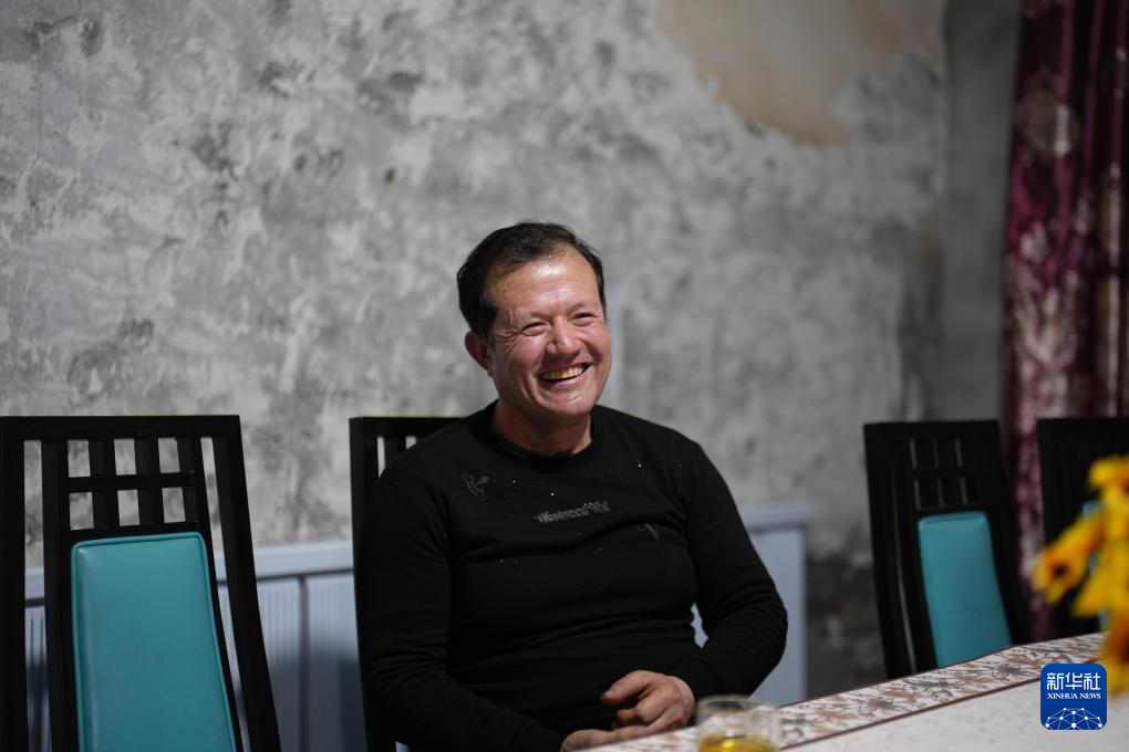 2月8日,在伊犁哈萨克自治州新源县,木沙江·海拉特在家中接受采访时畅谈对今年两会的期待。