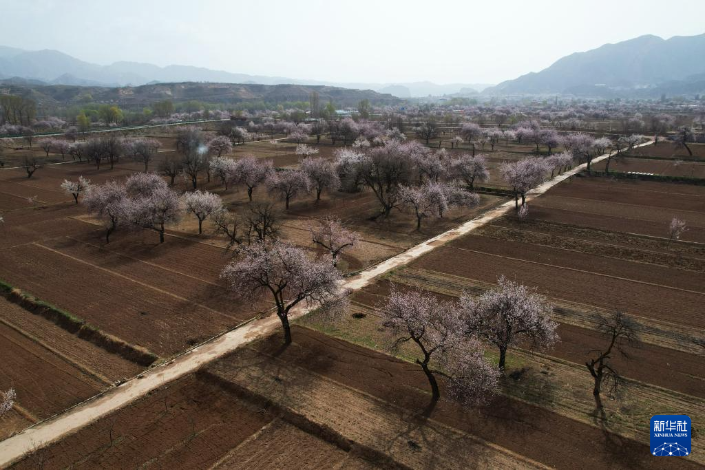 这是4月3日在甘肃省东乡县唐汪镇拍摄的杏园风光(无人机照片)。