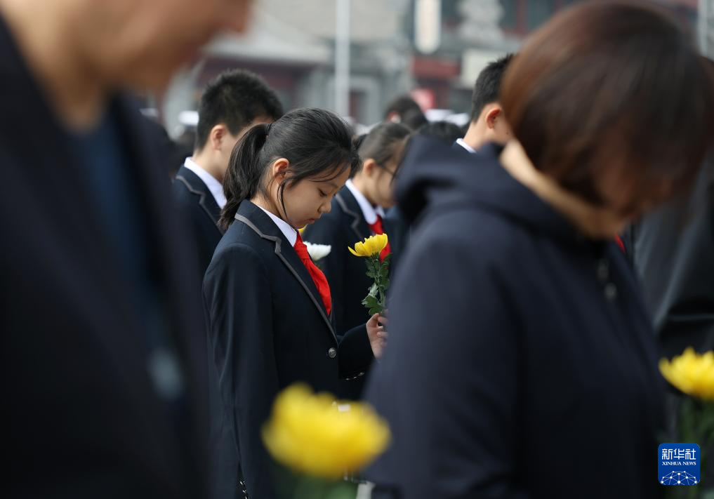 4月3日,参加活动的社会各界代表在中国人民抗日战争纪念馆向抗战英烈献花。