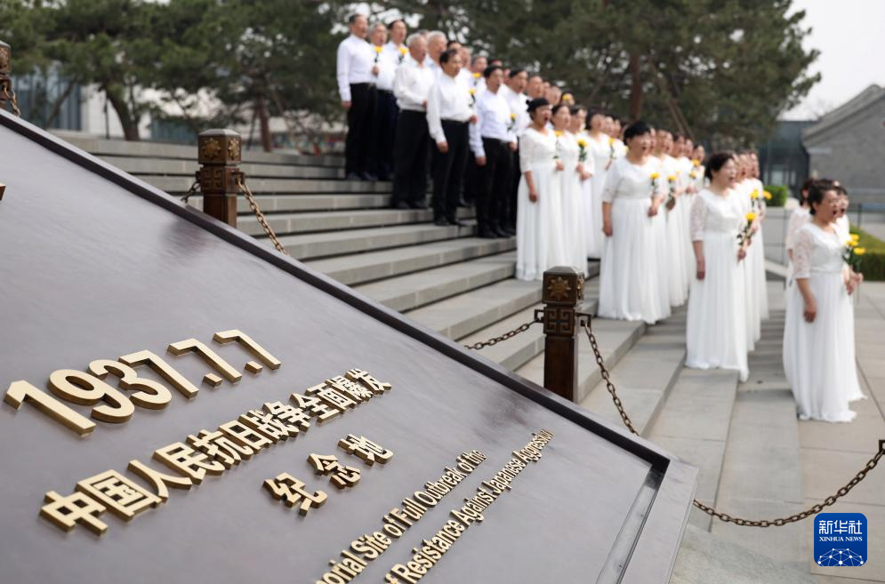 4月3日在中国人民抗日战争纪念馆拍摄的“清明节的铭记”主题教育系列活动启动仪式现场。