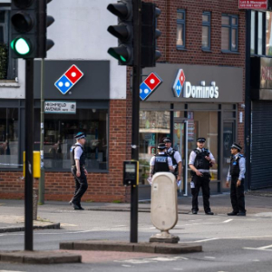 4月29日,警察在英国伦敦戈尔德斯格林地区袭击事件现场警戒。