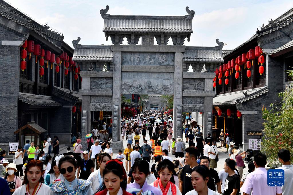 游客在山東省莒縣莒國古城商業(yè)街區(qū)游覽(7月24日攝)。新華社記者 郭緒雷 攝