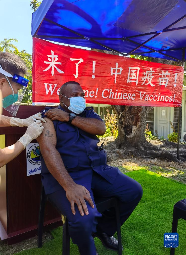 2021年7月13日,巴布亞新幾內亞政府在首都莫爾茲比港總醫院正式開始為當地民眾接種中國新冠疫苗。新華社發(中國駐巴新大使館供圖)
