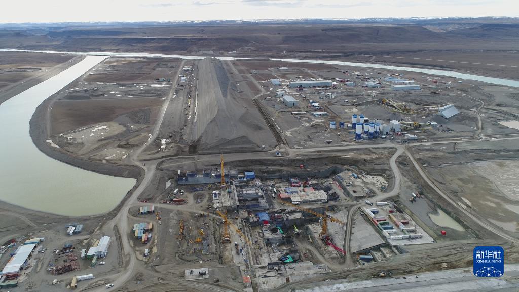 這是2021年8月26日拍攝的阿根廷“基塞”水電站項目施工現場(無人機照片)。新華社發(中國能建葛洲壩集團阿根廷“基塞”水電站項目部供圖)
