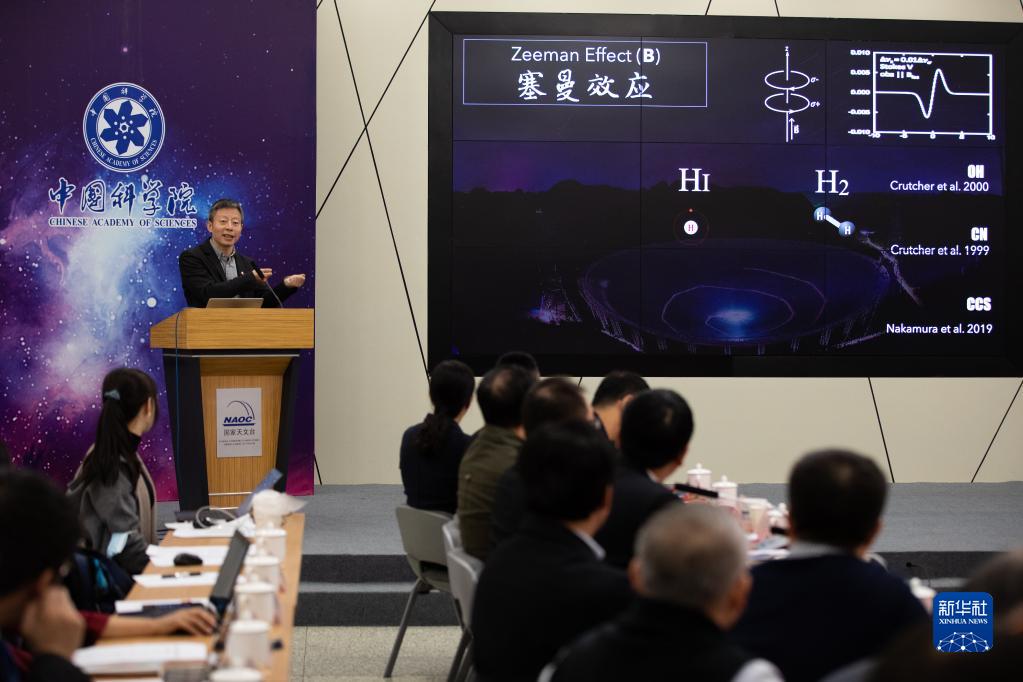 1月5日,在中科院國家天文臺舉行的新聞發布會上,FAST運行和發展中心首席科學家李菂介紹FAST在中性氫領域的最新重大成果。新華社記者 金立旺 攝