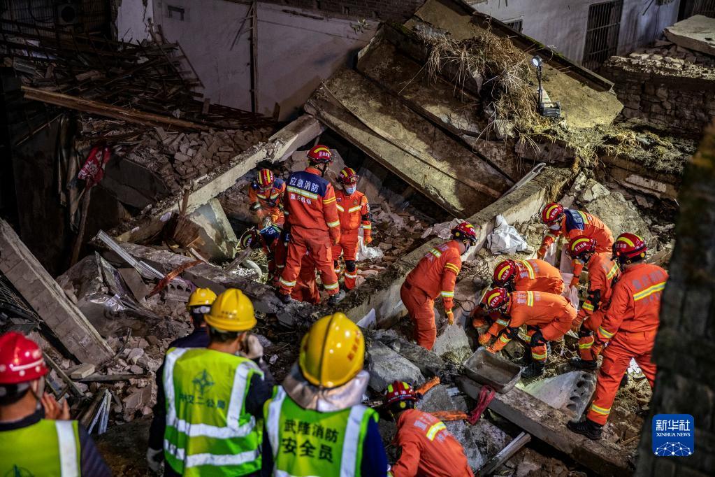 資料圖片:1月7日,在重慶市武隆區(qū)鳳山街道辦事處食堂坍塌現(xiàn)場(chǎng),救援人員在開(kāi)展救援。新華社記者 黃偉 攝