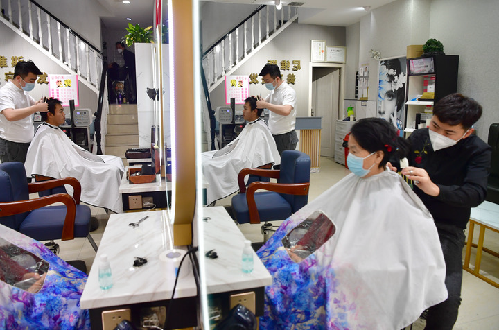 1月20日,在西安曲江新區(qū)一家理發(fā)店內(nèi),理發(fā)師正在為市民理發(fā)。新華社記者邵瑞攝