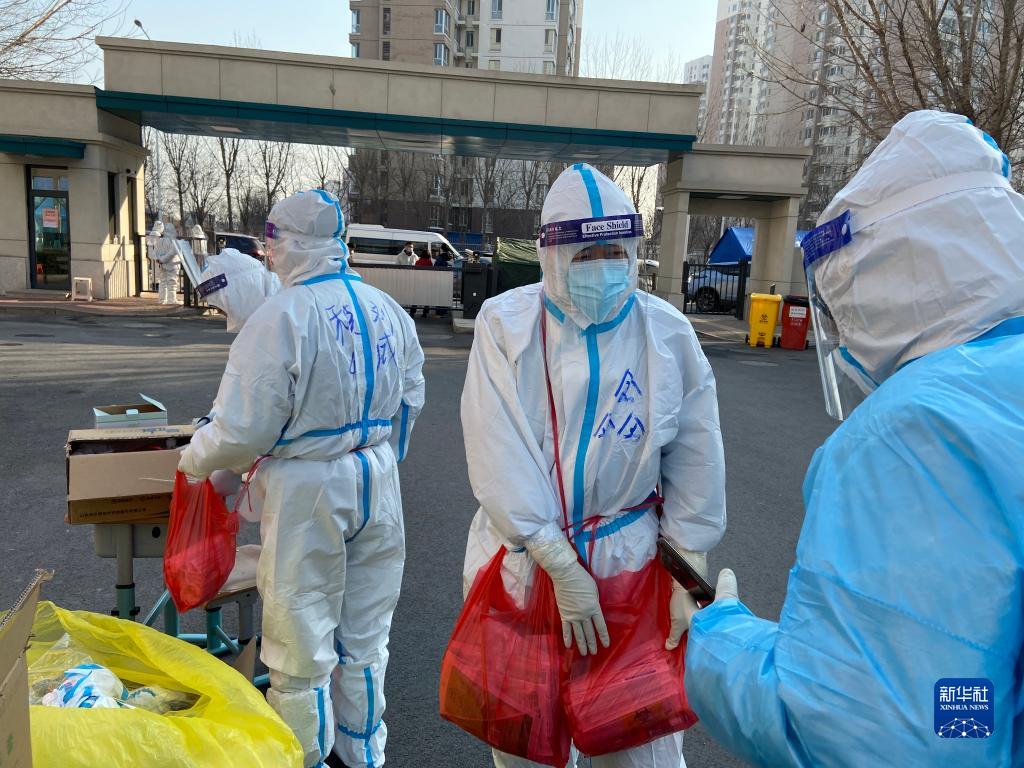 趙洪鑫(中)在入戶(hù)采樣前準(zhǔn)備醫(yī)療物資(1月15日攝)。新華社發(fā)