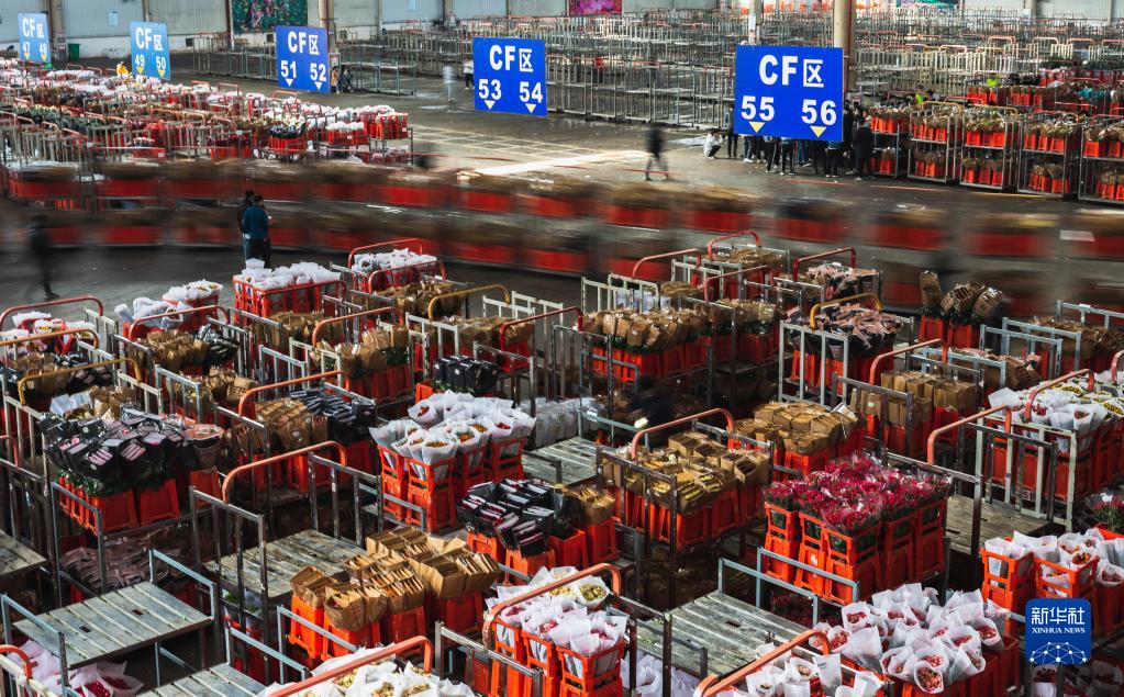 “每天晚上,這里可以買賣117個大類、1600多個品種的2000多萬枝鮮切花,然后連夜通過航空、冷鏈運輸等方式運往全國各地乃至國外?!倍纺匣ɑ墚a業集團副總裁晉波說。