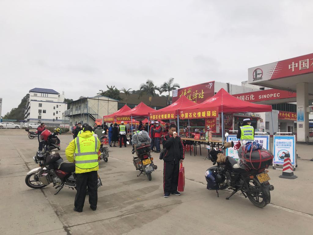 鄒丹以往每年都在位于兩廣交界處的梧州都連加油站春運服務站執勤,“如今‘摩托大軍’越來越少,我們近幾年也將工作重心轉移到高速路和梧州南高鐵站周邊路段。”