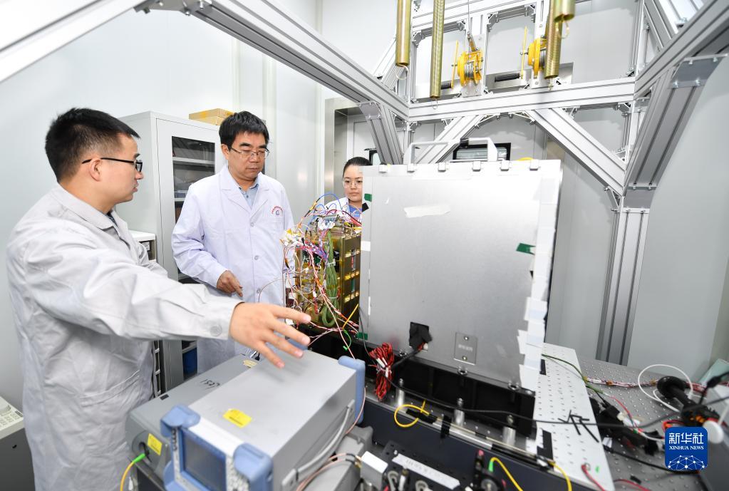 2月8日,中國科學院國家授時中心首席科學家張首剛(中)在空間窄線寬激光實驗室與科研團隊成員交流。新華社記者 張博文 攝