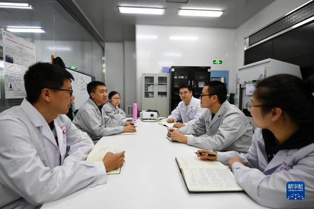 2月7日,科研人員在中國科學院國家授時中心空間鍶原子光鐘實驗室討論項目進度。新華社記者 張博文 攝