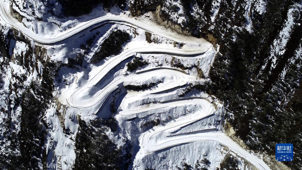 通往西藏洛扎縣拉郊鄉(xiāng)杰羅布村的道路(1月17日攝,無人機照片)。新華社記者 韓曦樂 攝