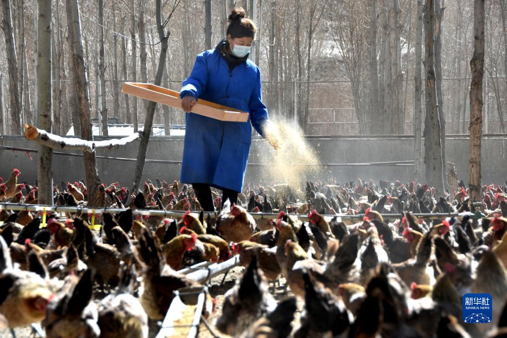 西藏洛扎縣次麥藏雞養(yǎng)殖合作社工作人員在給藏雞喂食(1月19日攝)。新華社記者 陳尚才 攝