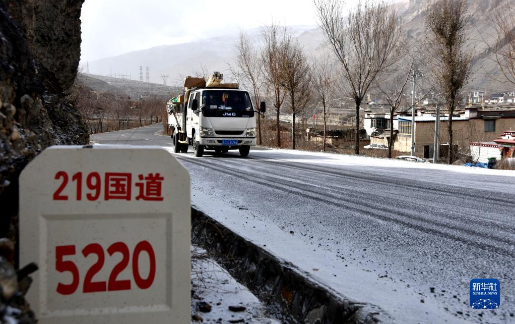西藏洛扎縣境內(nèi)的國道與道路旁的民居(1月19日攝)。新華社記者 陳尚才 攝