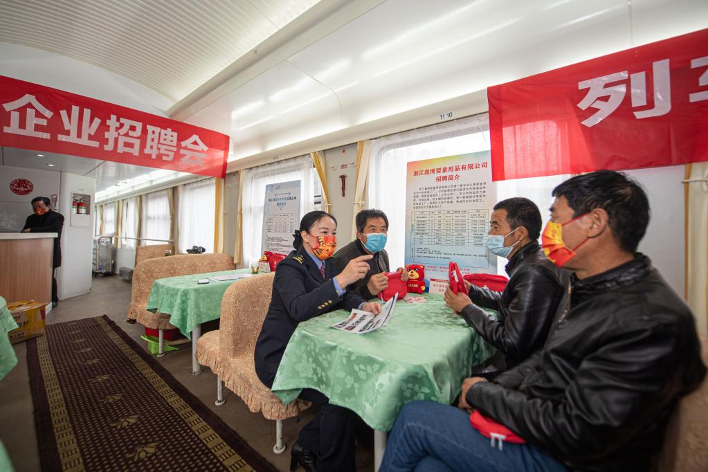 這個想法得到浙江省總工會以及寧波、衢州、湖州等地政府和企業的支持。據悉,今年已是杭州客運段連續第二年在列車上舉辦招聘會。今年這場招聘會共有9家企業提供56個工種、4269個崗位。