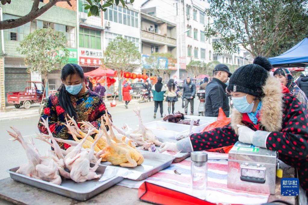 1月29日,在湖北省隨縣柳林鎮主街道上,人們在選購年貨。新華社發(伍志尊 攝)