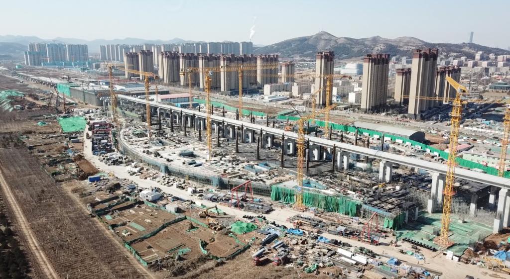 圖為2月22日,山東省濟南市濟萊高鐵港溝站施工現場。 新華社記者 李小波 攝