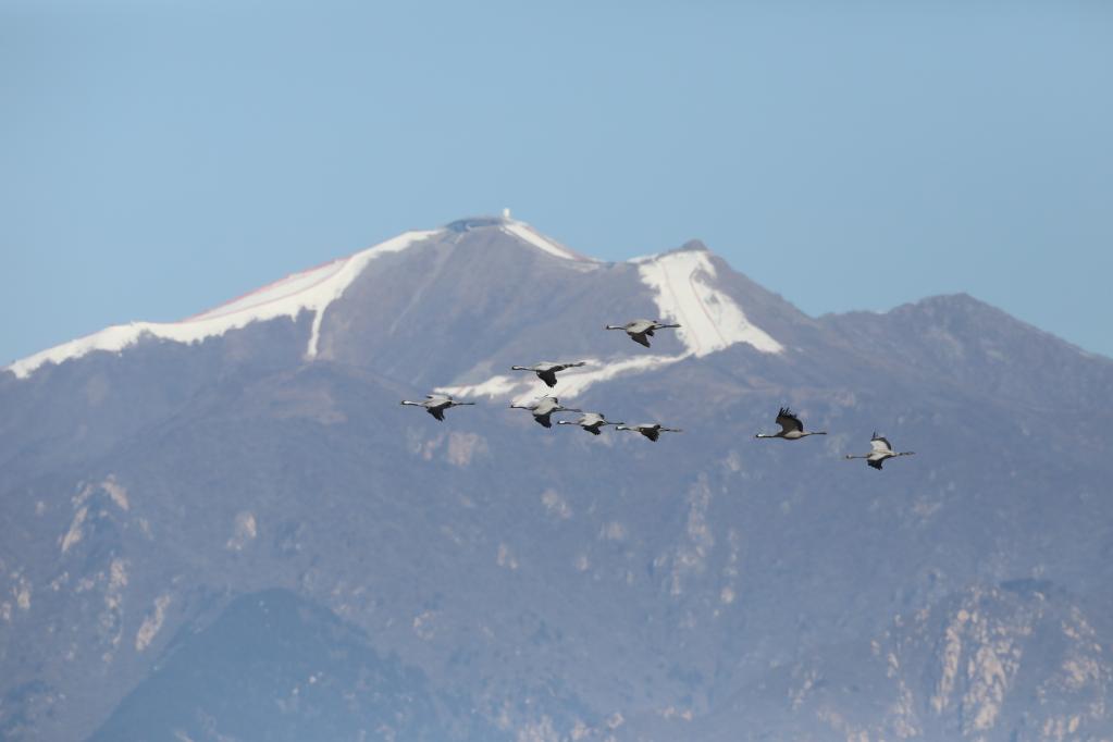 ↑圖為在北京野鴨湖濕地自然保護區越冬的灰鶴(張延攝)