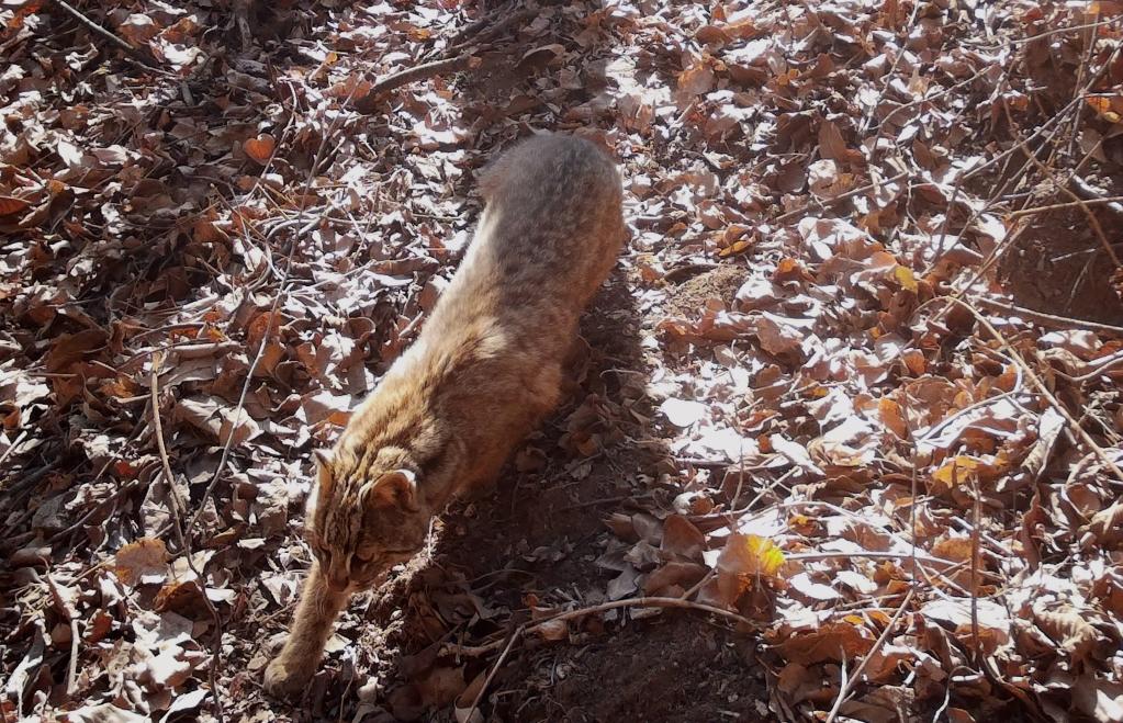 ↑圖為在北京松山國家級自然保護區用紅外相機拍攝到的豹貓(保護區供圖)