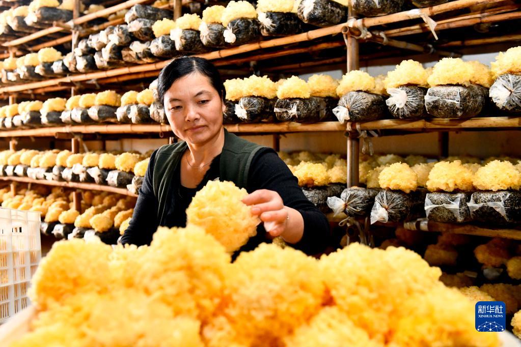 在山東省惠民縣銀豐食用菌合作社,農民采摘銀耳(2021年11月18日攝)。 新華社記者 郭緒雷 攝