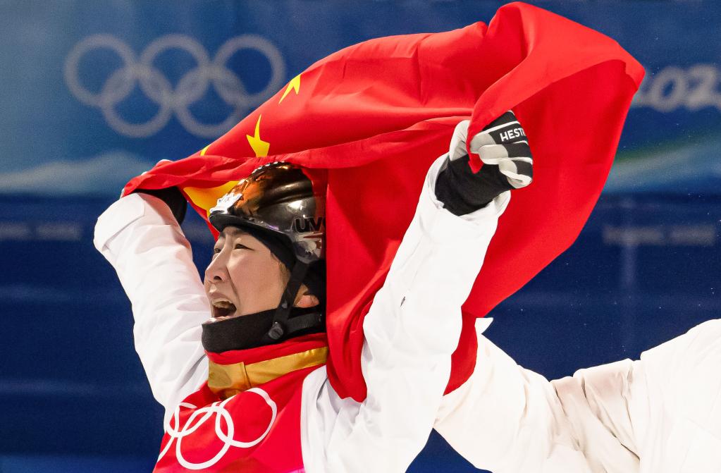 2月14日,北京2022年冬奧會(huì)自由式滑雪女子空中技巧決賽,徐夢(mèng)桃?jiàn)Z得冠軍。新華社記者肖藝九攝