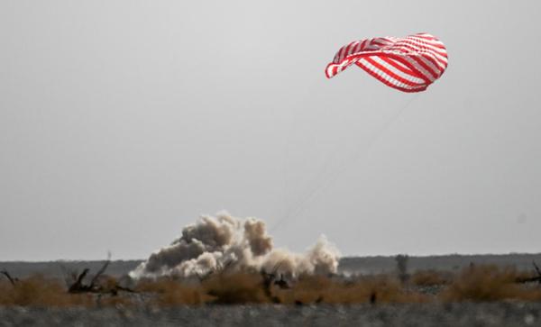 2022年4月16日,神舟十三號(hào)載人飛船返回艙在東風(fēng)著陸場(chǎng)成功著陸。新華社記者 連振 攝