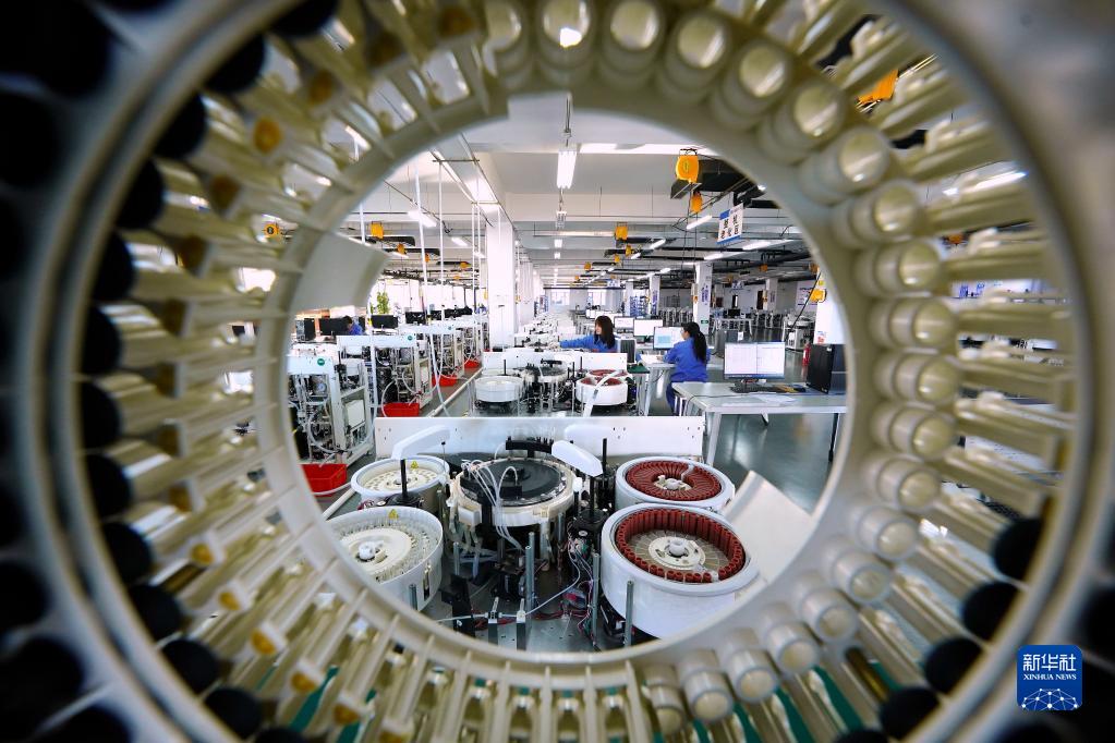 河北省遷安市一家生物科技企業的員工在生產線上工作(2021年12月26日攝)。新華社記者 牟宇 攝
