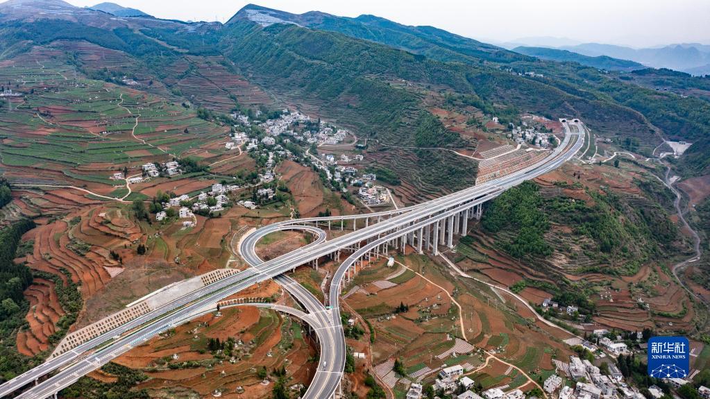 貴州赫(赫章)六(六盤水)高速公路汪家寨互通(4月21日攝,無人機照片)。新華社記者 陶亮 攝