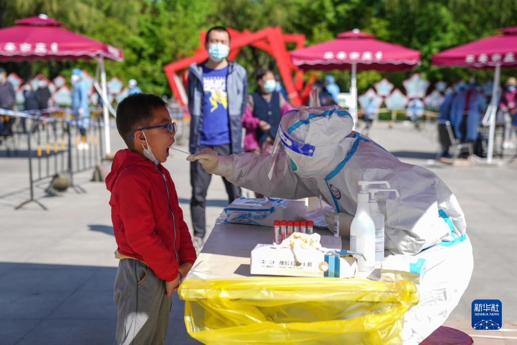 4月30日,在北京市大興區亦莊鎮一核酸采樣點,醫護人員為市民進行核酸采樣。新華社記者 彭子洋 攝