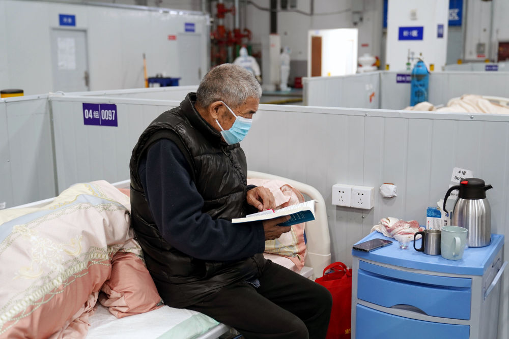 這張照片讓我感觸頗深。4月23日世界讀書日這天,今年82歲的李先生坐在床邊默默看一本書,書名:《決戰朝鮮》。他是在4月22日晚轉運到臨港方艙醫院的,盡管子女都封控在家里不能陪在身邊,但他依然堅韌、平靜面對病毒。