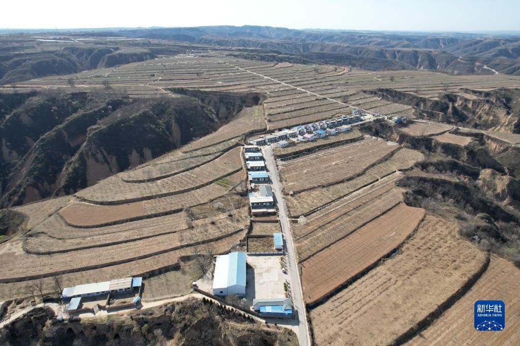 延安市宜川縣云巖鎮辛戶村發展的蘋果種植基地(4月2日攝,無人機照片)。新華社記者 邵瑞 攝